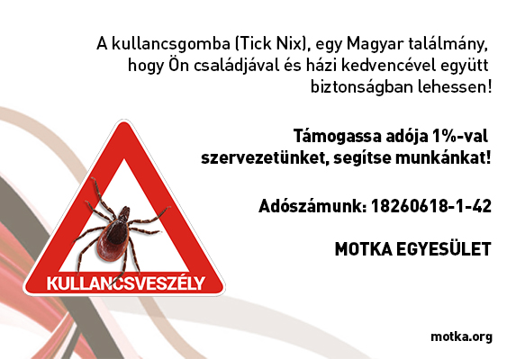 Szervezetünk mindent elkövet annak érdeképen, hogy Dr. Bratek Zoltán és Dr.  Bozsik Béla kutatók által kifeljesztett magyar találmány a kullancsgomba –„Tick-Nix” gyártása - a további kutatások mellett - minél hamarabb elindulhasson.